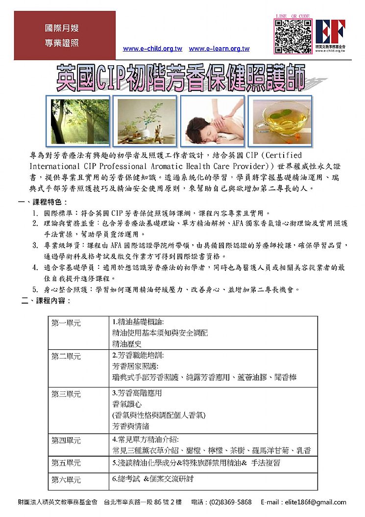 【台北市】115.05.16英國CIP初階芳香保健照護師