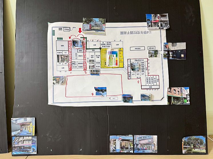 以校園周邊為散步點,建構出校園前後左右的代表商家位置圖