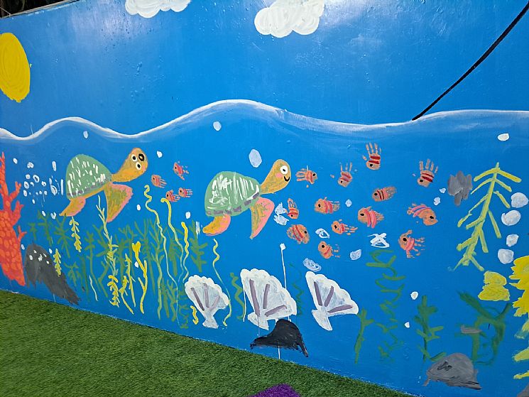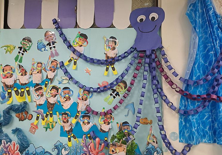 校園趴趴Go:「#海底世界樂悠悠」的主題,陪伴孩子探索海洋生物,孩子們動手玩創意,#將教室和户外彩繪牆,佈置栩栩如生。感謝#「#三峽小甜甜幼兒園」師生分享。