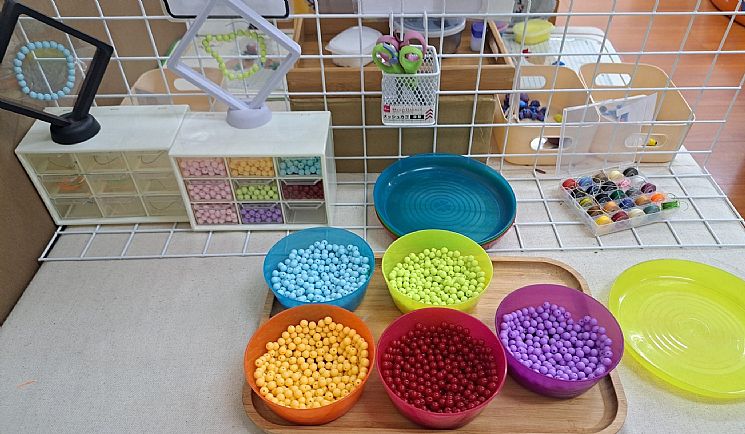 #校園趴趴Go:台中市烏日市立幼兒園--「#榮泉園分班」,用心的老師們總依孩子們的年齡層設計多元的教具。呈現在區域裡,讓寶貝們能「#由做中學」,在串珠區中學習穿針引線,自己用尺量線長度,剪線,穿珠子,完成項鍊,手鍊。#编織器,讓孩子挑戰纏毛線,配合工具書,大班孩子能自己纒繞出水果,動物造型等。「#境教」是教學不可或缺的一環。#感謝榮泉分班師生分享。