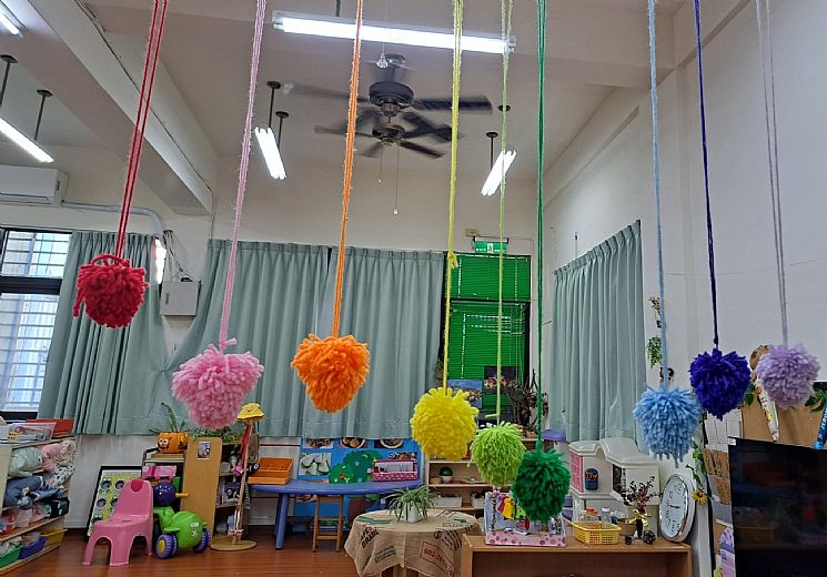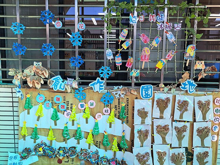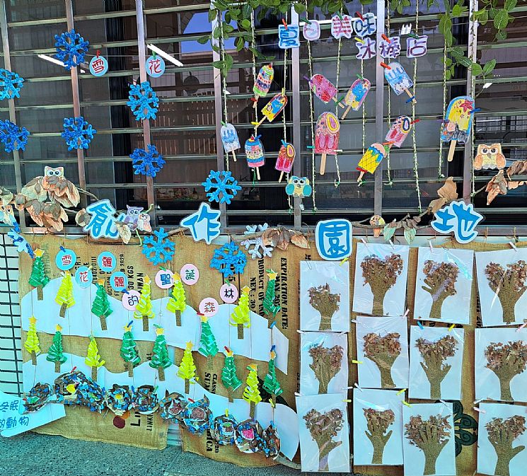 校園趴趴GO:讓孩子配合主題海洋,以孩子的作品怖置教室,更添童趣。「#海洋食物鏈風鈴」,孩子們用泡泡袋玩創意,透過「刷和剪」的技巧,共同完成竹子風鈴。感謝「#新華園幼兒園」師生分享。