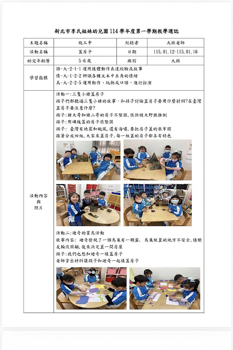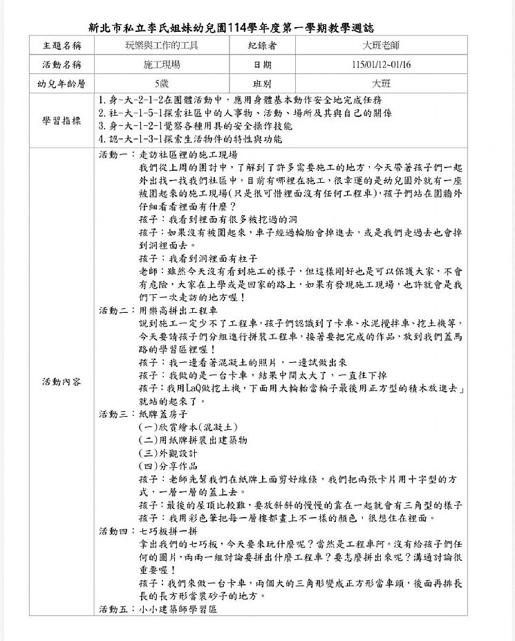 #週教案 #大班 115.01.12-115.01.16