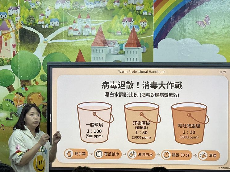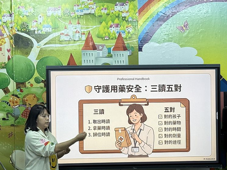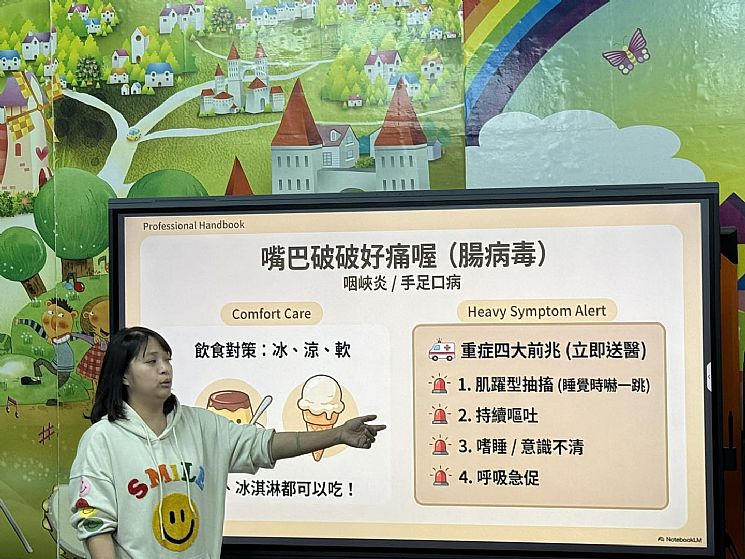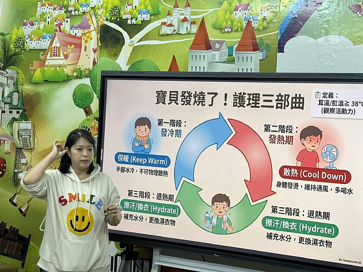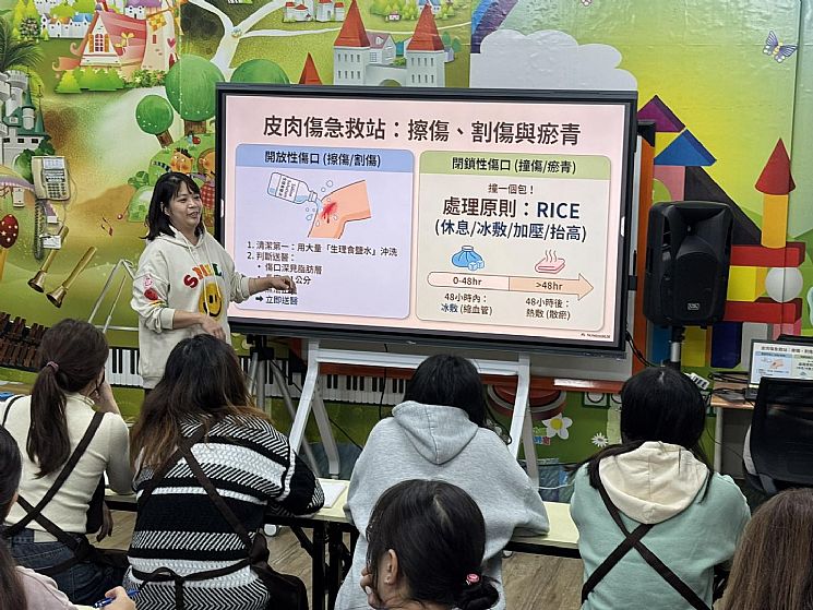 孩子在園的每一天,安全與健康始終是我們最重視的事,為了讓老師們在第一時間能更正確、安心地照顧孩子,邀請專業護理師到園內分享。