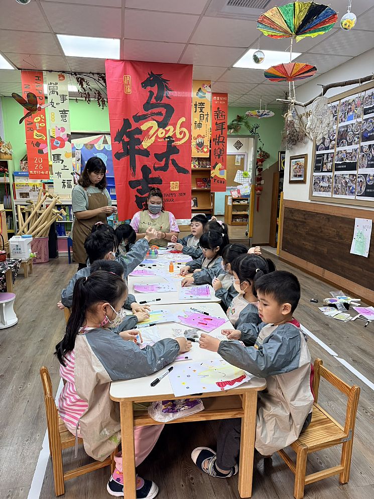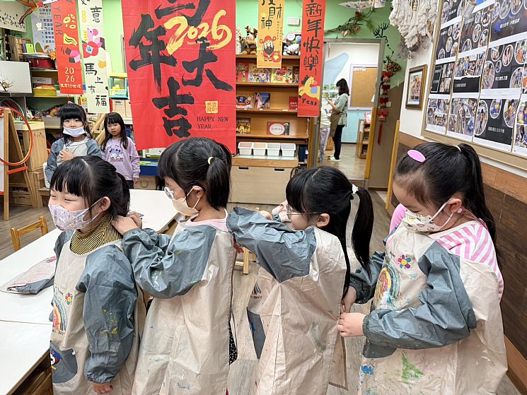 呵呵.忙忙忙...把跟孩子在一起的每一天珍藏進成長檔案,童言童語和成長的轉變讓孩子透過繪畫.團討.合作互動....自在參與快樂學習的過程,孩子要團創過年作品,互相幫忙穿畫衣真可愛