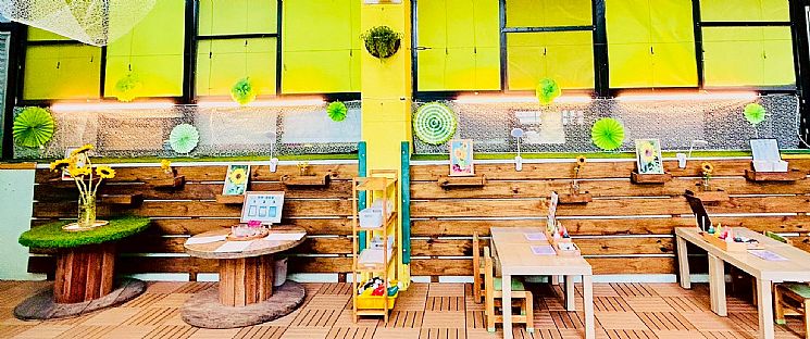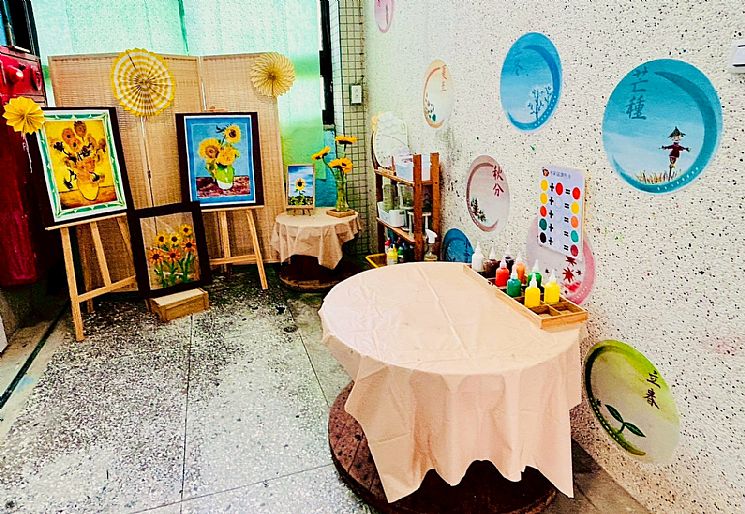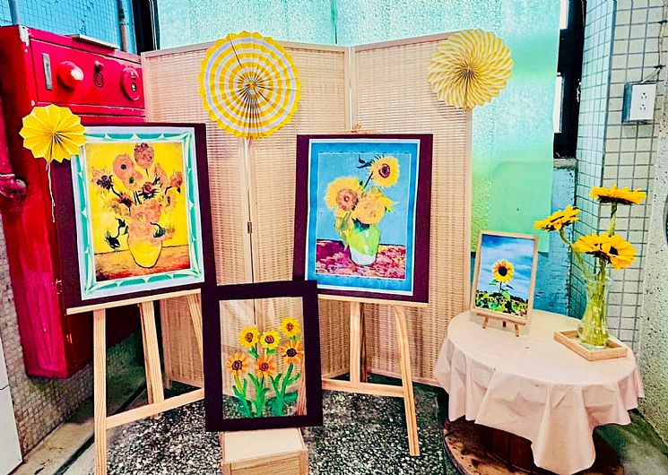此次美感廊道以畫家梵谷向日葵作為創作的主軸,但創作不僅僅只有呈現出線條及色彩而已,是可以結合多元性的媒材進行創作,營造出不同的視覺藝術與情境, 於是水彩區內加入不一樣的媒材,讓孩子們自由的探索與嘗試,讓作品從平面到半立體,進而使孩子們在空間及立體感方面能更加提昇,讓創作變得有趣、豐富,現在跟著我們一起來參觀水彩區的向日葵畫展~ 💕