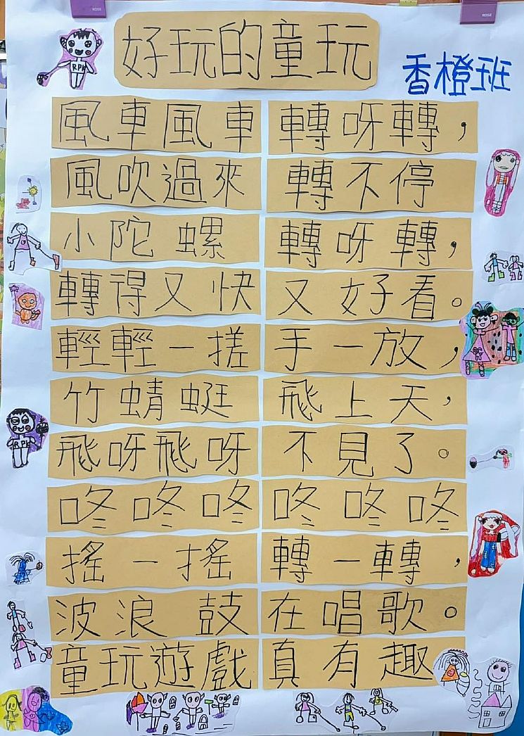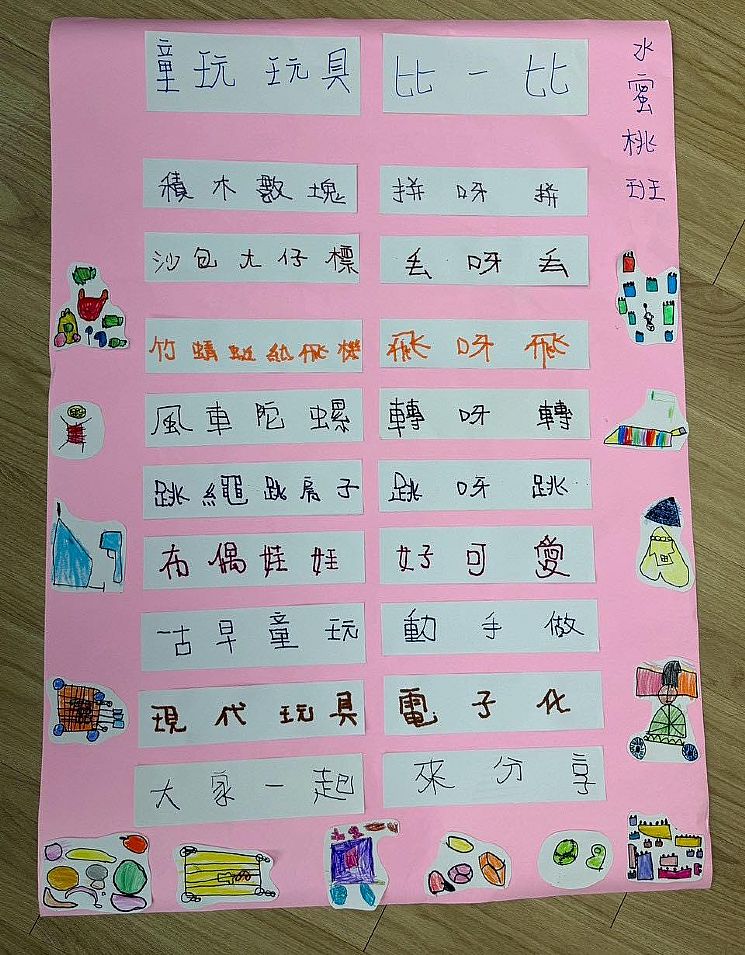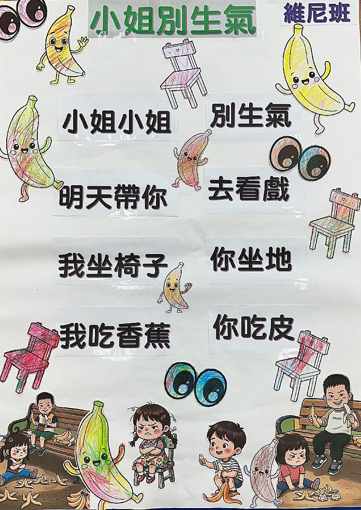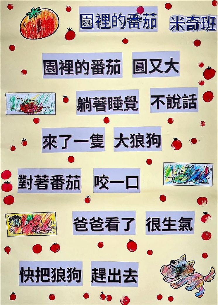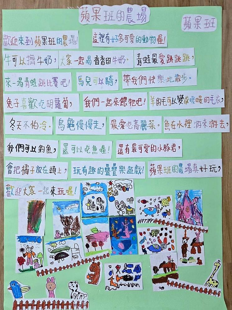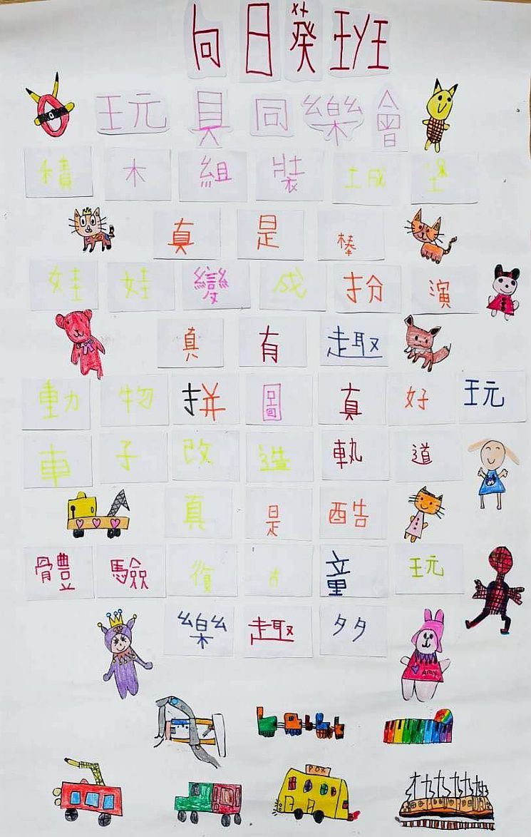 中大班的孩子更進一步,不僅親自書寫海報文字、參與設計與創作,還與同儕合作構思與完成演說內容,在過程中展現出團隊合作與語文表達的能力。