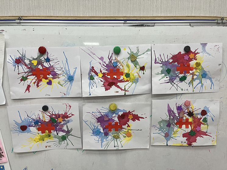 ¥ý§â¦UºØ¼s§iÃC®Æºw1¡ã3ºw¦A¹Ïµe¯È¤W¡Aºw¦n¥H«á¦A½Ð¤pªB¤Í¥Î¼L¤Ú§âºw¦A¹Ïµe¯ÈªºÃC®Æ§j¶}Åܦ¨§jµe¡A«á¦Ñ®v¦A¥Î¬õ¦âªº¯È°Å¥XÂù¤Qªº³y«¬Åý¤pªB¤Í¶K¦A¹Ïµe¯È¤W¡C
