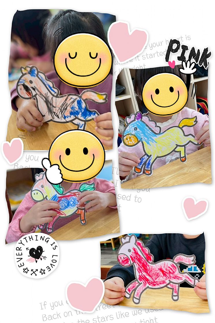 孩子先為自己的小馬塗上喜歡的顏色,每一匹馬都是孩子獨一無二的創作。