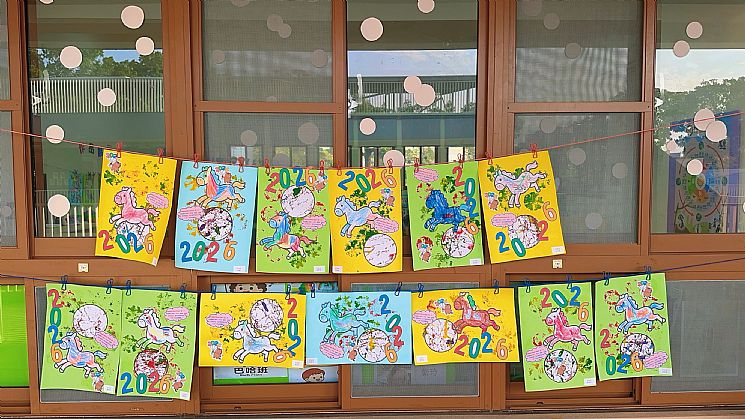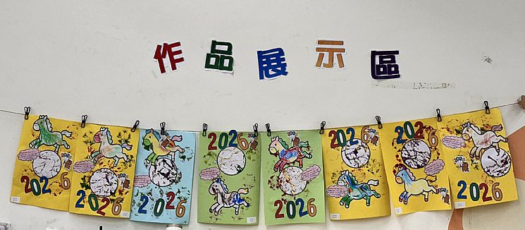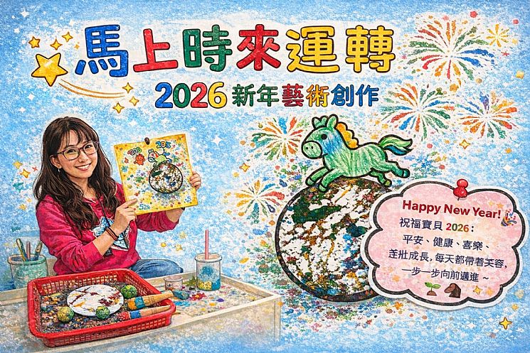 孩子們展開迎接 2026 年 的跨年藝術創作,以「馬上時來運轉」為主題,透過多元素材操作,將祝福、期待與成長的意義融入畫面中。