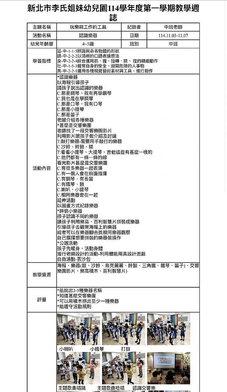 | 主題 | #週教案 #中班 2025年11月03日-11月07日 | ||||