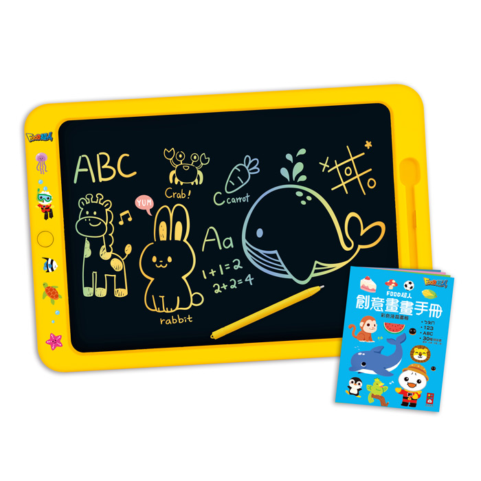鮮豔多彩的液晶畫板繪圖鮮豔,19吋的超大螢幕,能讓孩子動手發揮想像力與創意盡情塗鴉,陪伴孩子快樂成長。 2.學習手冊 內附學習手冊,除了有ㄅㄆㄇ、ABC、123運筆學習以外,也有簡單的簡筆畫給孩子繪圖參考,按照步驟輕鬆畫出可愛插圖。 3.畫筆好寫好收納 特殊筆尖設計,順滑好寫畫,也有收納凹槽與掛繩,不怕弄丟。 4.發揮無限創意 液晶螢幕可讓孩子盡情塗鴉,一鍵清除可N次寫、N次畫,讓孩子發揮無限創意。 5.螢幕鎖定功能 螢幕鎖定開關可以防止誤觸清除按鍵,能輕鬆保留孩子的繪圖,留下美好圖案與回憶。